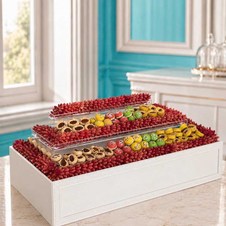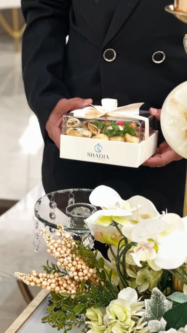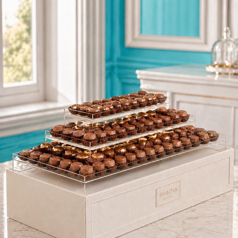 في شادية بيكري نقدم بوكسات ضيافة أنيقة تجمع بين الترتيب الفاخر والمذاق المتنوع، بتشكيلات مختارة من الحلويات والشوكولاتة والمخبوزات لتكون جاهزة للتقديم في مناسباتكم واجتماعاتكم بكل رقي.
